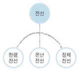 두 기단이 서로 만나 섞이지 않고 밀 때 그 경계에서 만들어지는 것. 전선이 생긴 주위는 날씨가 불안정해진다. [전선의 종류와 날씨] 성질이 다른 공기가 만나면 바로 섞이지 않고 경계면을 만든다