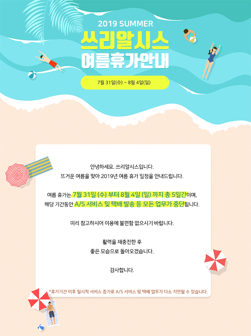 쓰리알, 2019년 하계 휴가 안내입니다. - 주간 / 국내 뉴스 - 기글하드웨어