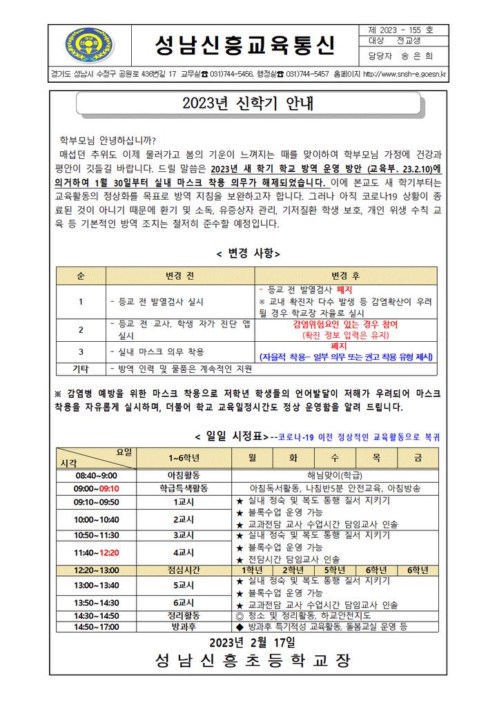 (성남신흥초-제155호) 23학년도 새학기 안내 :: 가정통신문... 성남신흥초등학교 :: 가정통신문 :: (성남신흥초-제155호) 23학년도 새학기 안내