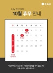 공지사항 - 2018년 10월 휴무안내 공지사항 - 2018년 10월 휴무안내
