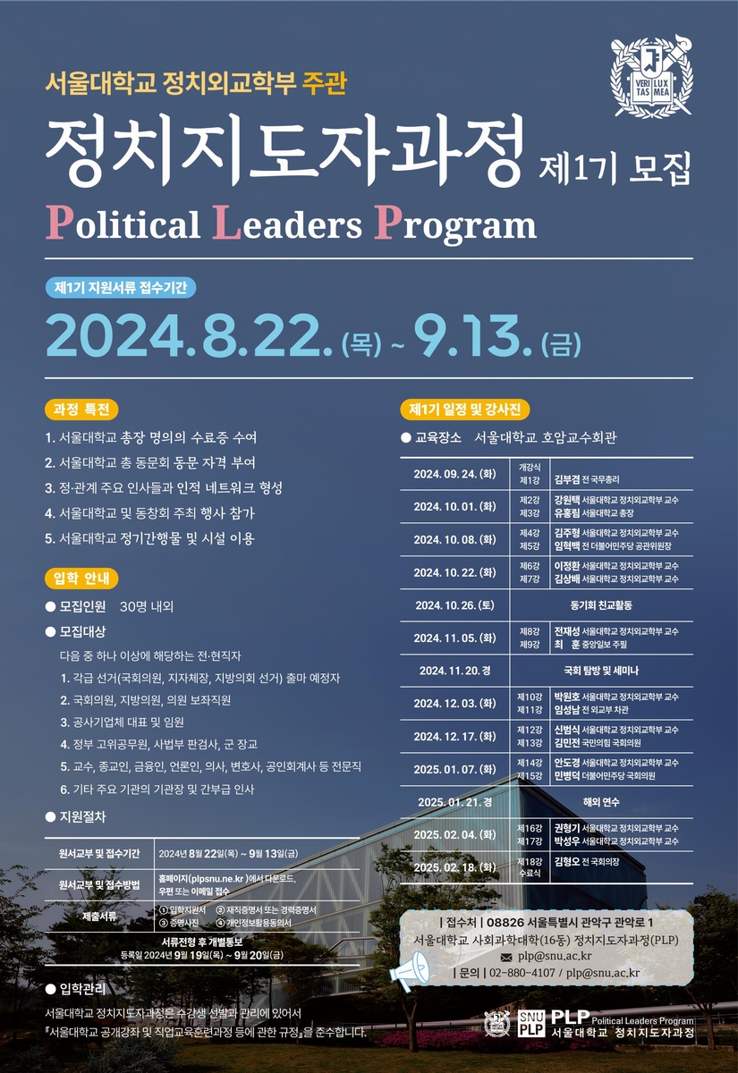 "한국 정치외교 위기"…서울대, 정치지도자 최고위과정 개설